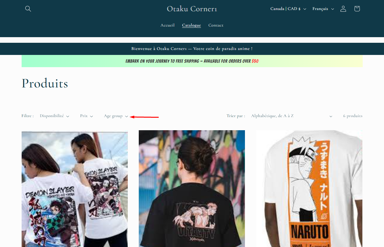 In the example below, the Age group filter is not translated because it's from Shopify's Search & Discovery app.