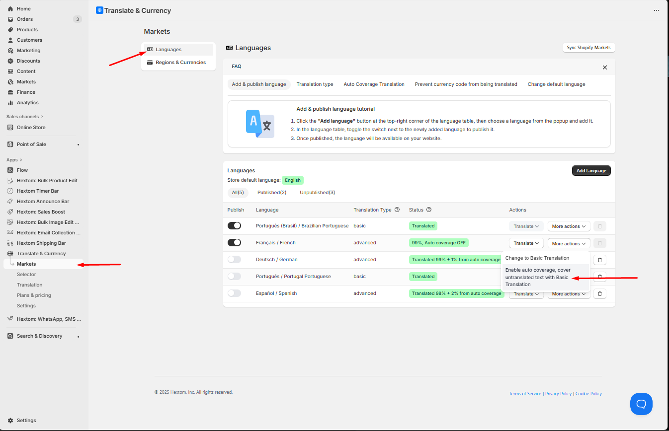 - Click More Actions > Enable Auto Coverage. The filters will then be translated automatically.