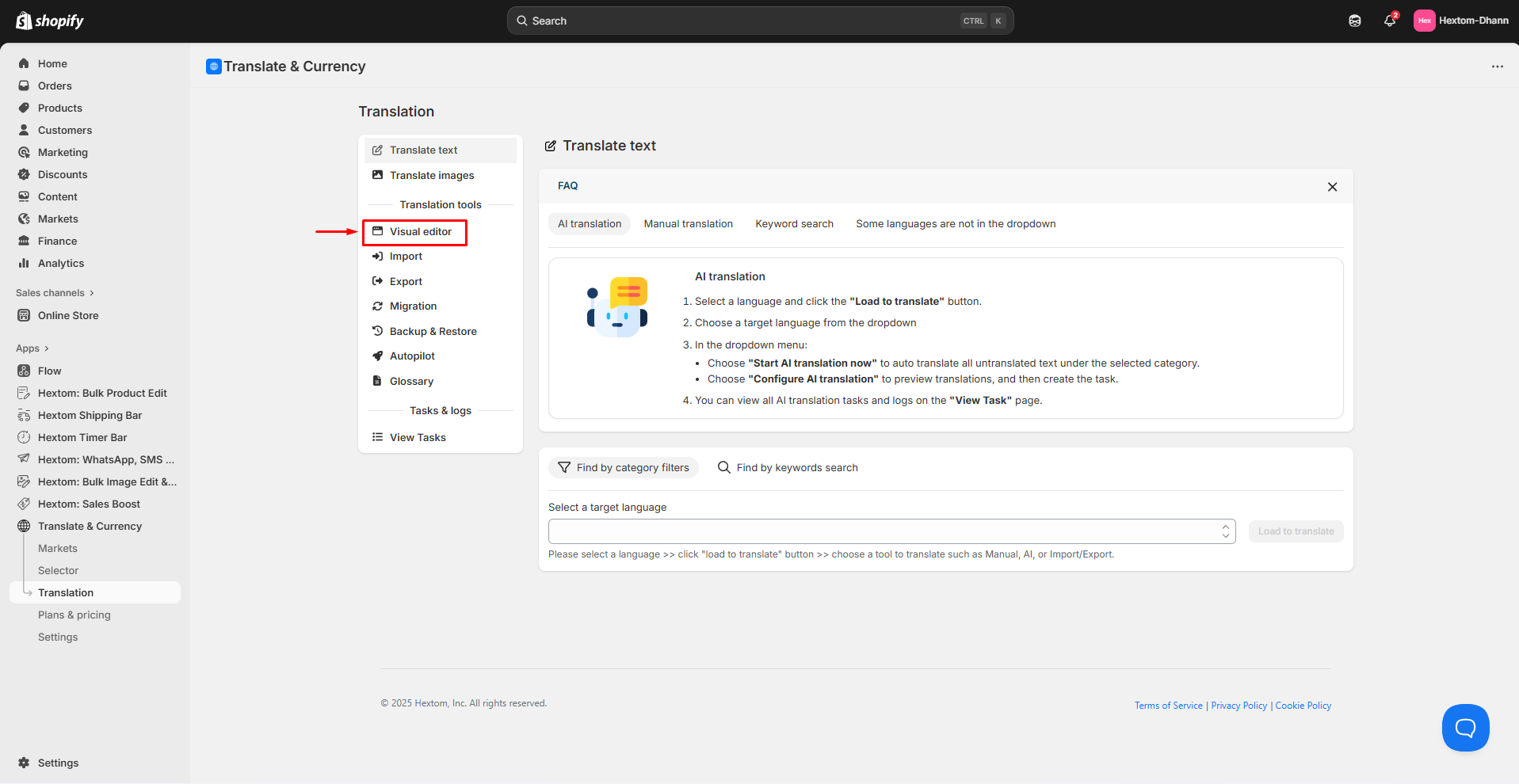 - Navigate to the "Visual Editor Tool" from the Translation page in our app.