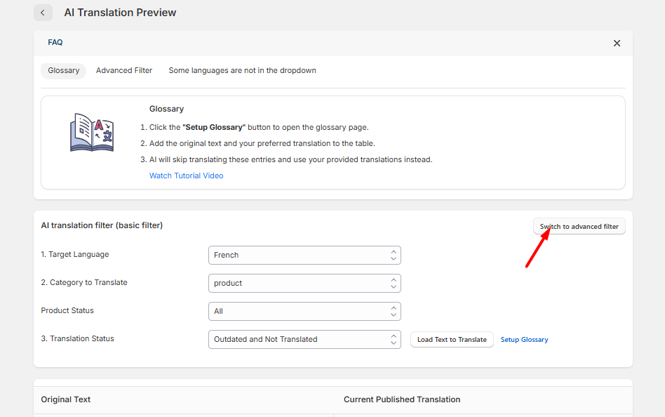 To translate it into your alternative languages, you can use our app's Manual Translation by using Keyword Search or AI Translation tool by using the Advanced Filter.