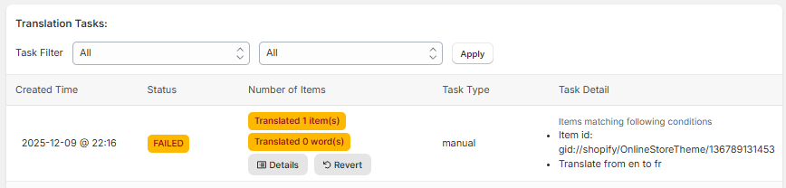 Because Hextom: Translate and Currency relies on Shopify’s native translation mechanism, removing old or unused keys will free up capacity for future translations.