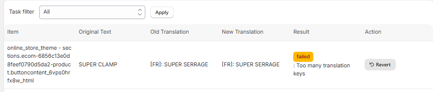 - This helps prevent accumulation over time and avoids hitting Shopify’s hard translation-key cap, even as you continue to expand or localize your store. Here's an example from the Shopify community where merchants encountered the same issue.