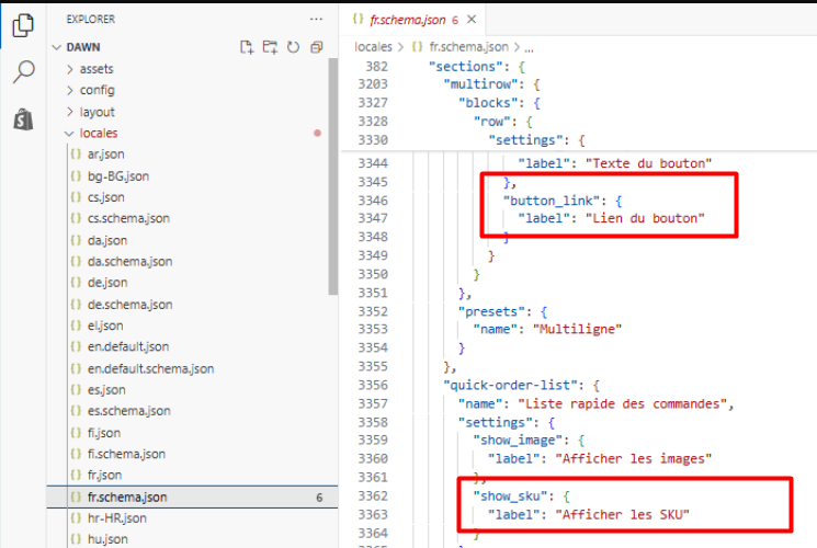 - Within your theme’s locale files (e.g. the translation JSON files Shopify uses internally), remove keys that no longer correspond to active content in your store.